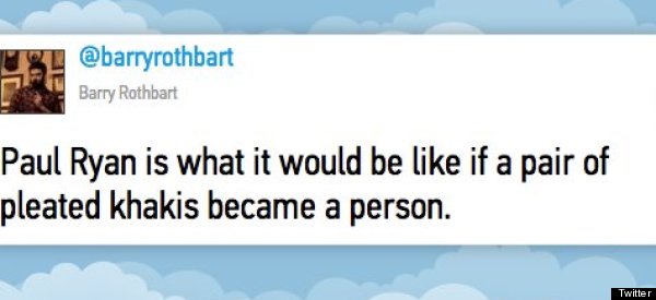 Thursday, August 30, 2012 While Paul Ryan was giving his supporters a double dose of indisputable charm and questionable facts at the Republican National Convention last night, comedians on Twitter were following along, doling out the snark by tweeting jokes throughout the speech. BLOG POSTS | Barry Levinson: The Age of Insanity - Part 2, Paul Ryan As the age of insanity rolls along, lying has reached a new level in political activism. Apparently, you can lie freely now. I decided to talk to Dr. R.H. Flutes, head of the Lying Institute of America, to explain the lying epidemic sweeping this country. | | Jenny Isenman: Do You Speak Starbucks or Are You Committing a Caffeinated Crime? When you walk into a Starbucks it's a little like entering another country. Some of the language is "Italianish" and the rest is completely fabricated. | | D.L. Hughley: A Question of Legitimacy What I do have a problem with is someone who is insincerely pro-life, someone for whom this is an abstract concept with no relation to the reality. One of the hardest things for me to recount in my recent book was a sexual assault I witnessed when I was a kid... | | Cheech Marin: English Only! Part 2 Ok, Let's pretend that the Latino population explosion is not going to happen (heh, heh, heh, at least try it) and go back to the "English Only" issue. If this is the situation, then we are going to have to re-name most of our states. | | Jeff Danziger: Off to College | | MOST POPULAR ON HUFFINGTONPOST.COM |